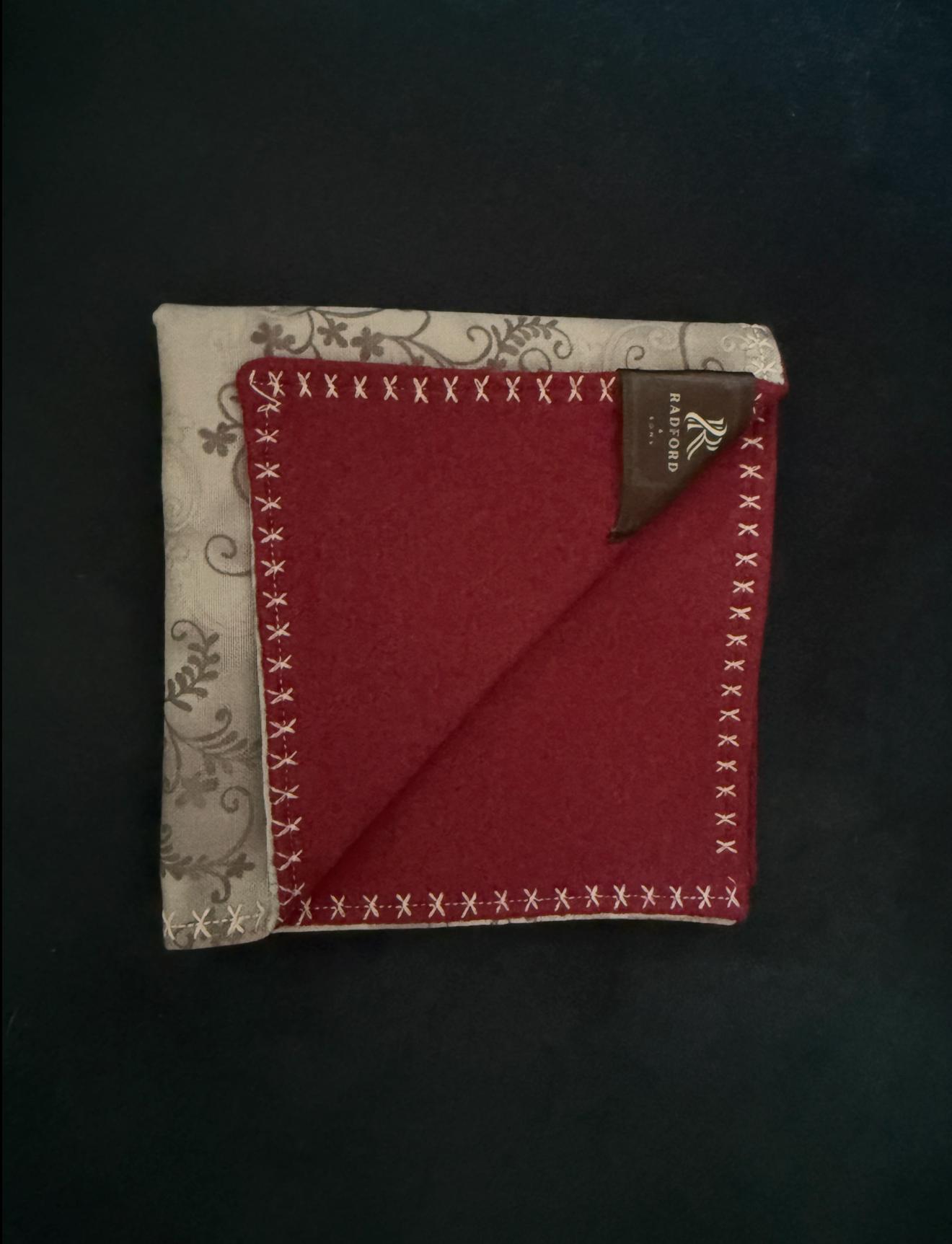 Deep burgundy microfibre paired with an intricate silver scroll motif. Rich, assured, and urbane — for the man who appreciates the detail others overlook.